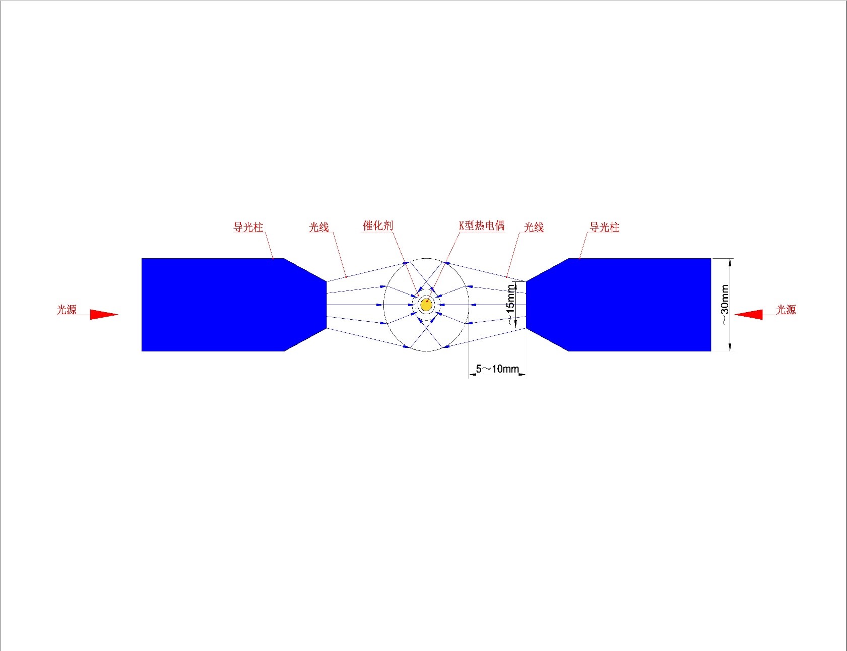 3) 反应炉工作区光照:直径30mm,采用双面照射,采用石英反应管,石英导光管;