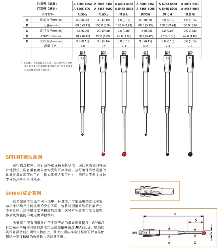 这是zui简单的一种测针,采用高球度的工业红宝石测球和备选的各种测杆材料。