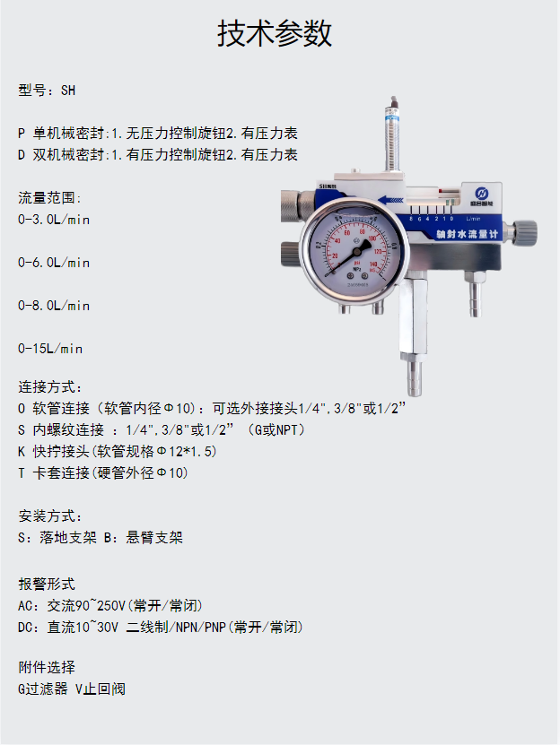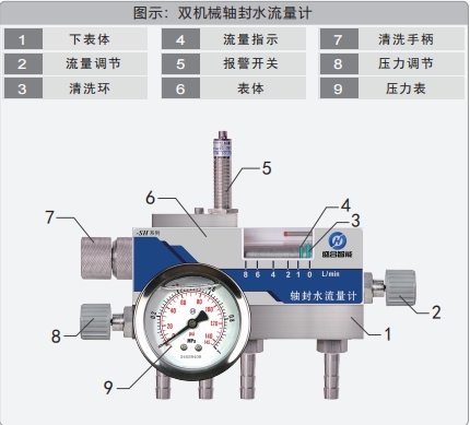 轴封水流量计为可固定系统,整个系统安装在泵的附近,包括流量测量装置及连接接头等,如果与报警开关配套使用,可自动调节水路的流量。