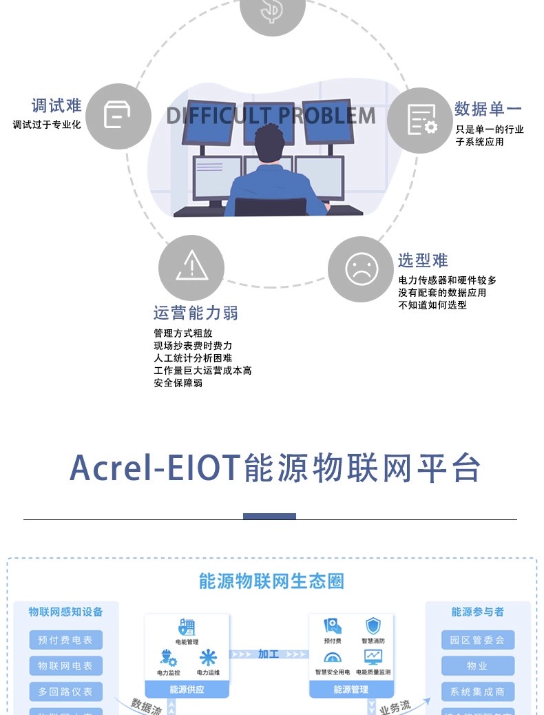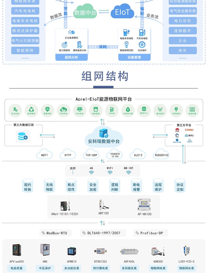 Acrel-EIoT能源物联网云平台是一套基于安科瑞物联网数据中台,建立了上下行数据标准,为互联网用户提供能源物联网数据服务的平台。用户仅需购买安科瑞物联网传感器和互感器等设备,自行安装后无论是物联网仪表直传还是通过网关上传,都可以使用手机扫码即可得到所需的行业数据服务。