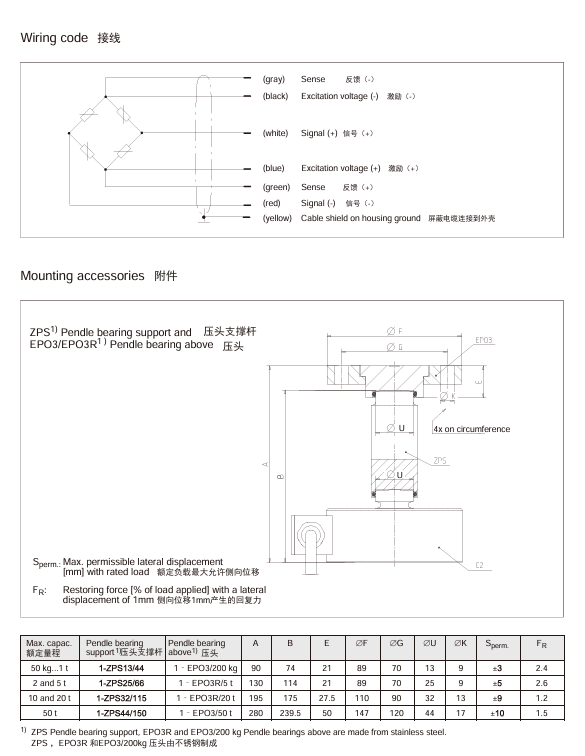 额定负载 50 kg / 100 kg / 200 kg / 500 kg / 1 t / 2 t / 5 t / 10 t / 20 t / 50 t