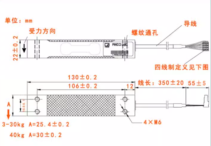 PW6C 额定量程: 3 kg, 5 kg, 10 kg, 15 kg, 20 kg, 30 kg, 40 kg