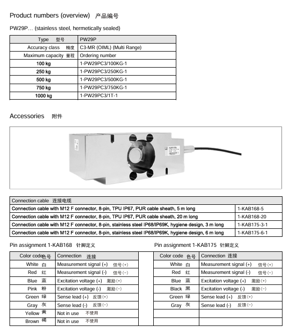 PW29PC3/250KG不锈钢称重传感器,德国HBM
