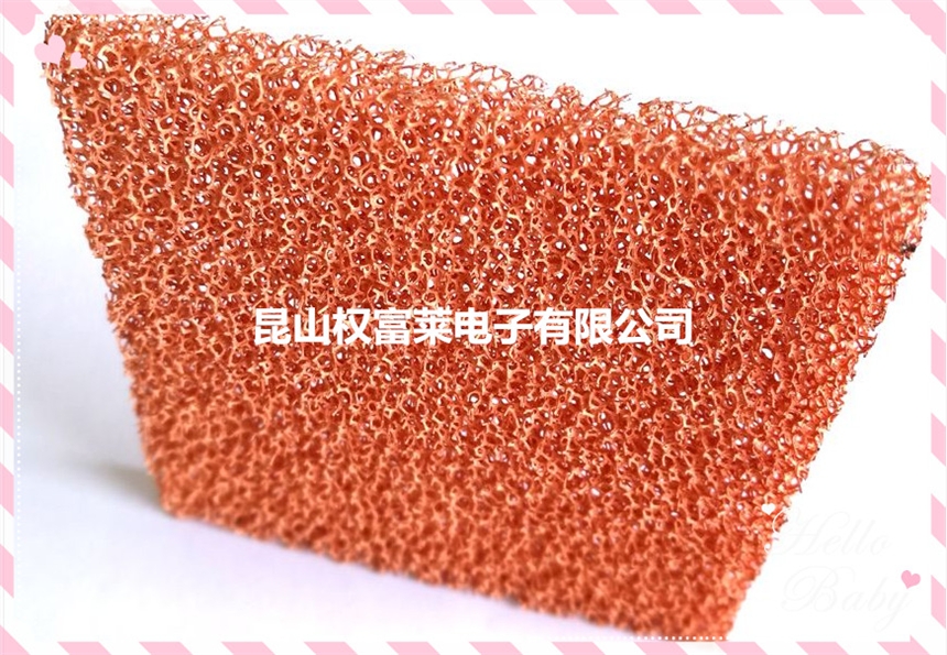多孔泡沫金属是金属集体中含有一定数量、一定尺寸孔径、一定孔隙率的多孔结构的金属材料,是当前材料科学中发展迅速的一种新材料。制作原理是在具有三维网状结构的特殊高分子材料骨架上,如聚氨基甲酸乙酯、聚酯氨基甲酸乙酯等特殊高分子材料(俗称海绵)上电镀出所需要的泡沫金属,镀好后烧除内部的高分子材料和还原金属氧化物,在经过化学热处理机加工成型,最后制得泡沫金属产品,所以泡沫金属具有立体多层三维结构,高通透性,可调孔径,并兼有功能材料和结构材料的双重作用. 具有阻尼、减震、降噪、隔热、阻燃、过滤、布气、电磁屏蔽等多种功能 ,同时具备一定的力学强度,而且质轻、耐热、耐腐蚀、比表面积大,化学及电化学活性高,不老化等,可在温度较高、环境较恶劣的工况条件下正常工作。有助于解决许多应用难题