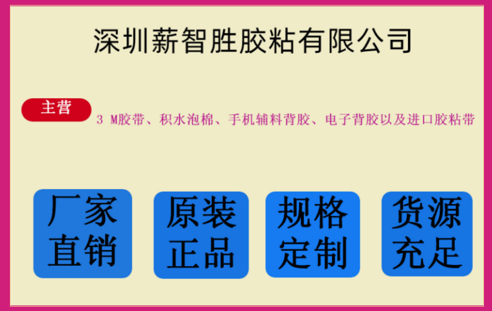 深圳薪智胜胶粘有限公司 智能客服智能客服在线解答,若涉及资金打款事宜,务必与厂家进行电话确认。