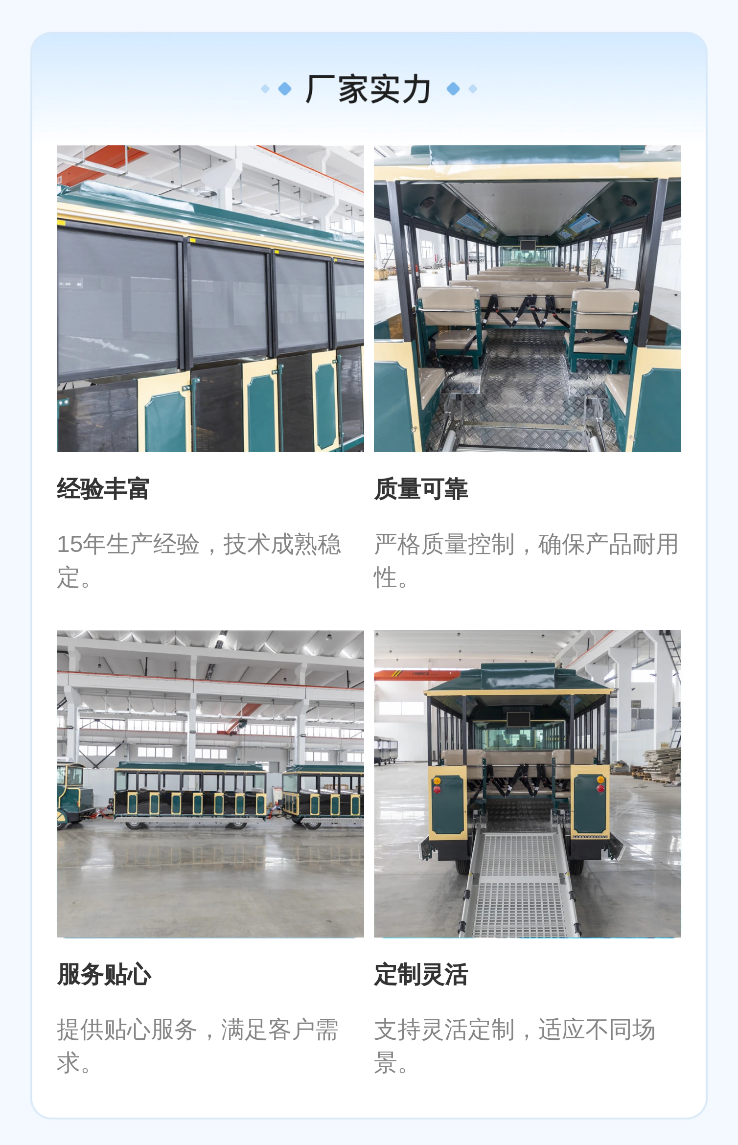 适用场景 | 旅游景区、工业园区、游乐场所、度假区 | ||