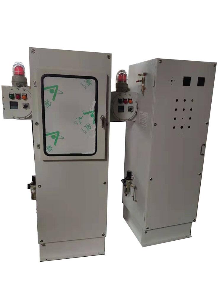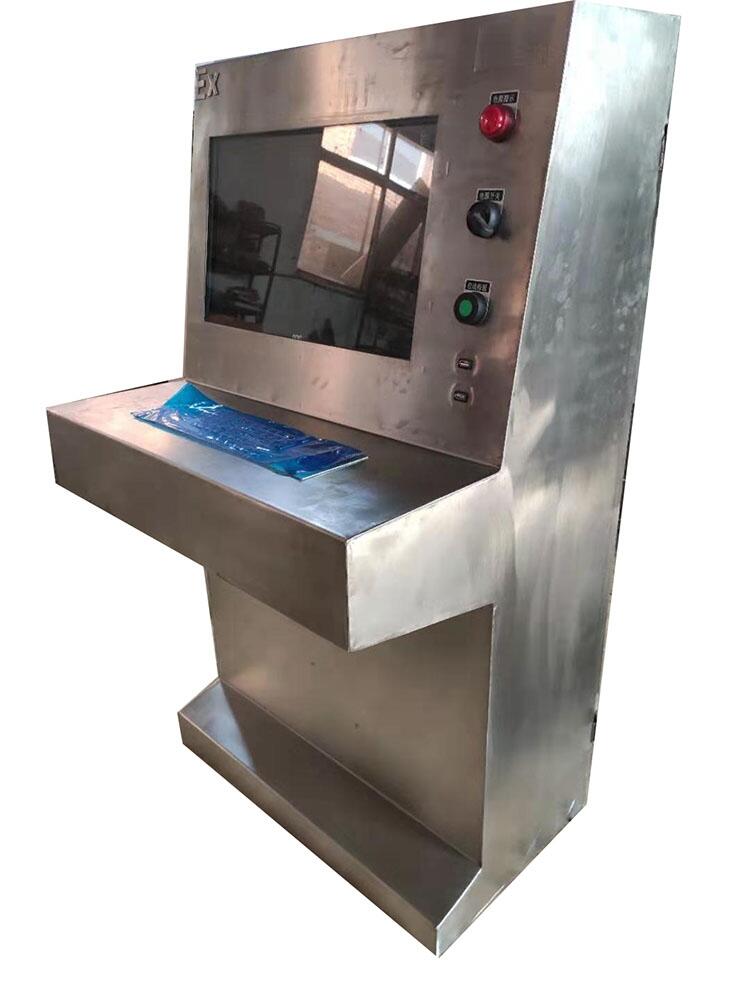 PLC不锈钢防爆柜-------防爆主令电器是用作闭合或断开控制电路,以发出命令或程序控制的开关电器。这类防爆电器主要包括控制按钮和操作柱。防爆控制按钮外壳一般用聚碳酸脂,玻璃纤维增强不饱合聚脂树脂或ABS塑料注塑来制造,也有少量是用铸铝压铸成形的。一般结构为增安型外壳,内装隔爆型元件,而且可以实现防腐功能,防爆等级可达ⅡC级。操作柱主要由主箱、接线箱和支柱组成。其主箱和接线箱有的制成一体,有的制成分体,各有特点。其材质基本上是用铸造铝合金材料制造。内部由各种仪表、转换开关、按钮和信号灯等元件组成。可以根据不同需要进行组合。
