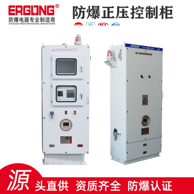 1.防爆正压柜在自动控制系统的控制下,正压腔内压力高于正压腔外的压力,形成微正压的安全小环境,从而阻止了可燃性危险气体进入正压腔内,对于内装的普通仪表和电器元件产生的电弧、火花进行完全的隔离,保障了现场的安全允许。