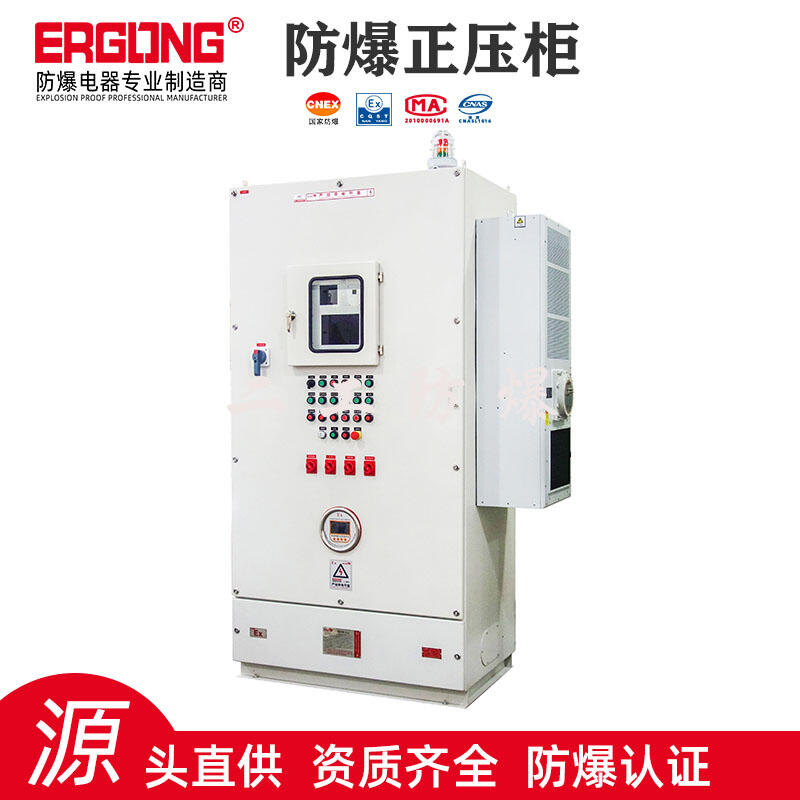 1.防爆正压柜在自动控制系统的控制下,正压腔内压力高于正压腔外的压力,形成微正压的安全小环境,从而阻止了可燃性危险气体进入正压腔内,对于内装的普通仪表和电器元件产生的电弧、火花进行完全的隔离,保障了现场的安全允许。