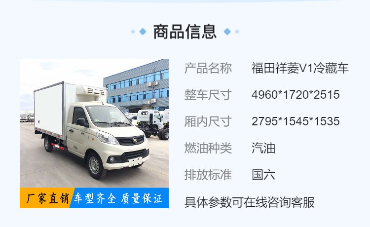 福田祥菱V1小型冷藏车保温车2.8米冰淇淋牛奶蔬菜冷链车