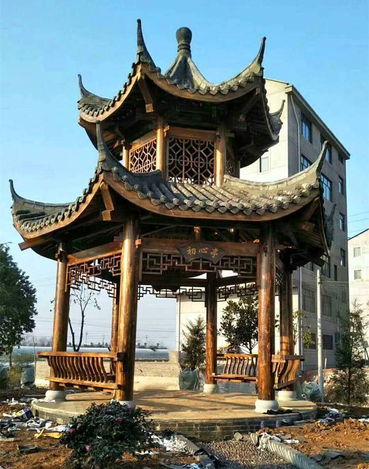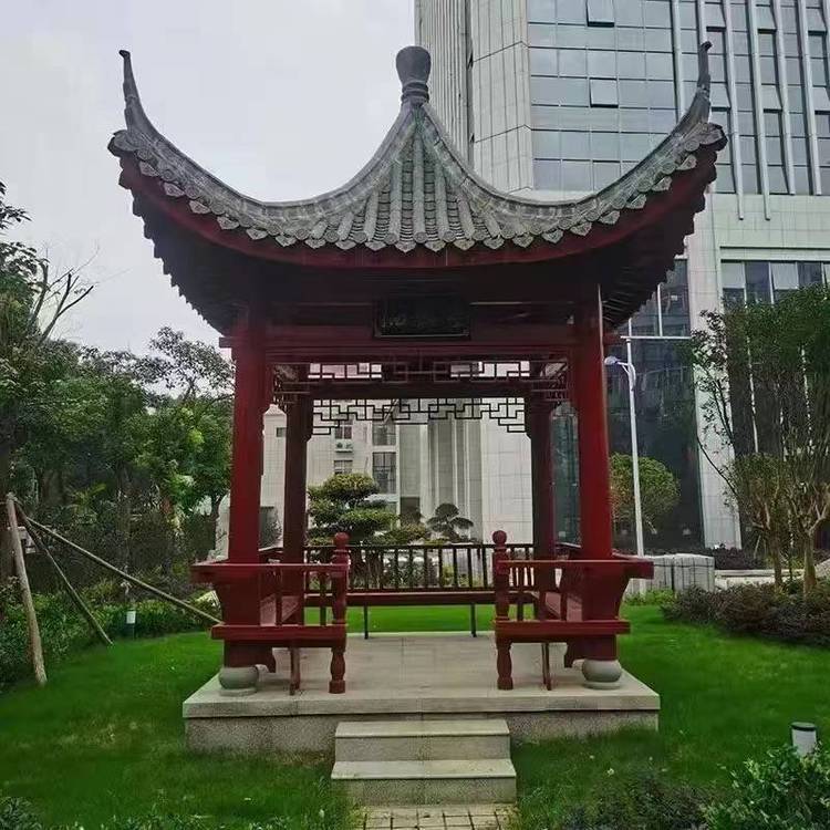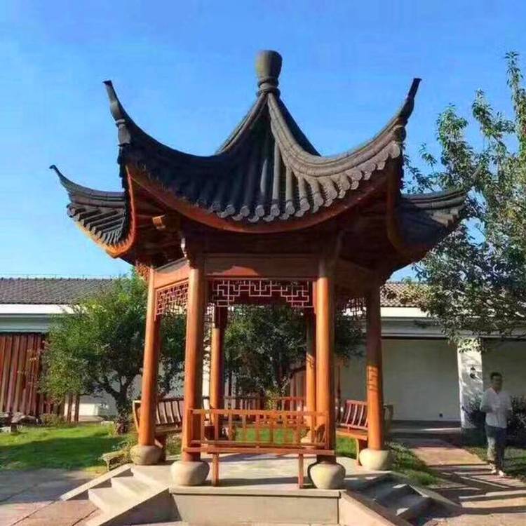 凉亭别墅庭院公园小区菠萝格凉亭六角凉亭树脂瓦古建凉亭