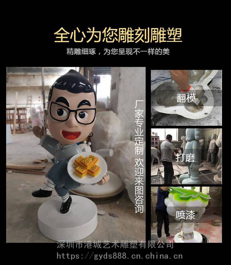 玻璃钢卡通IP形象公仔雕塑是指运用夸张、变形等手法,对卡通形象的品牌授权人物、动物等对象进行塑造的行为,通过雕刻艺术打造成立体的卡通形象,对空间起到景观装饰及品牌形象宣传推广作用,通常采用易造型性价比高户外抗老化耐候性好的玻璃钢材质制作。玻璃钢卡通IP形象公仔雕塑文化影响了几代人的行为准则、生活趣味和价值观念。 而在卡通文化流行和互联网当道的大背景下,企业也更加重视卡通IP形象公仔整合营销,店内宣传尤其是特殊陈列,对品牌曝光和销量提升的效果非常好。院线则重在扩大品牌曝光, 所以原创IP形象公仔雕塑市场发展前景一片光明。