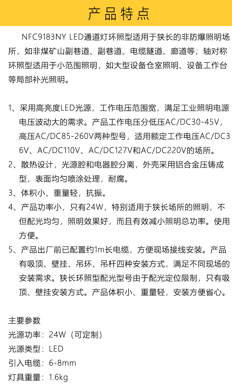 主要适用范围 | 大型设施、设备、装置等区域作固定照明 | ||