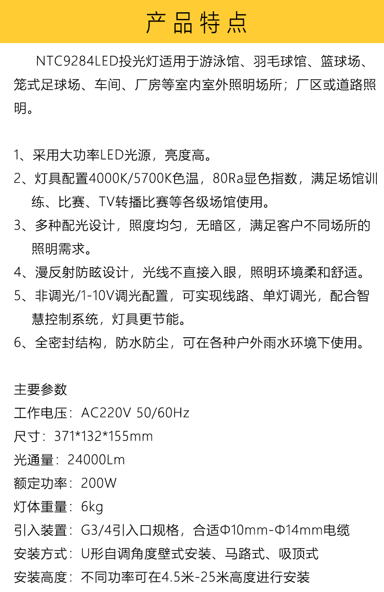 主要适用范围 | 厂区或道路照明 | ||