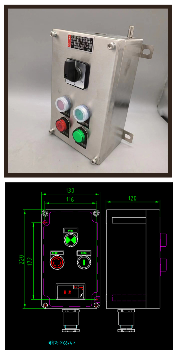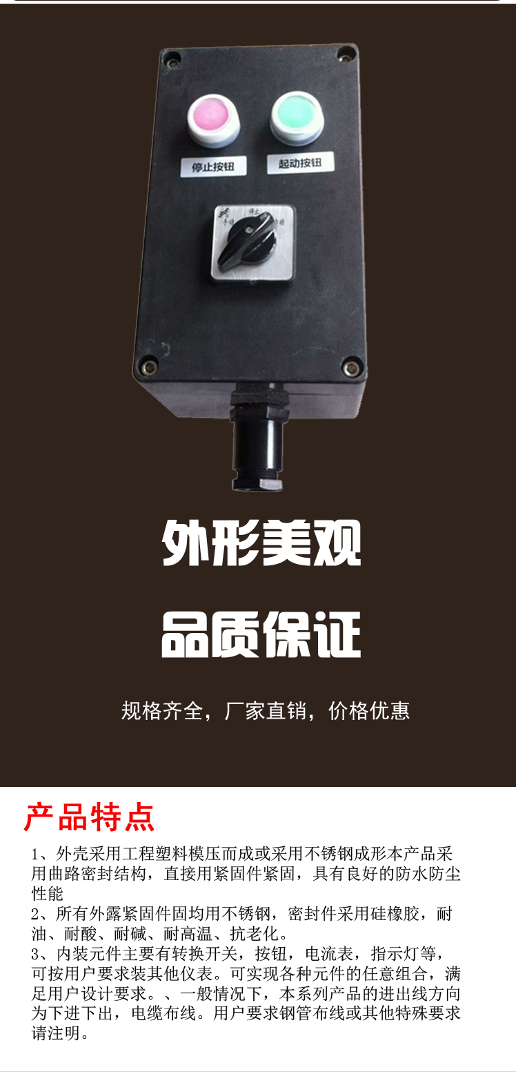 FZC-S-A2D2B1G防水防尘防腐风机按钮操作箱/就地仪表三防按钮盒 名称 | 三防操作柱 | ||
