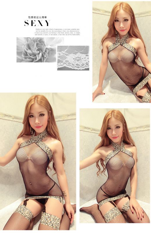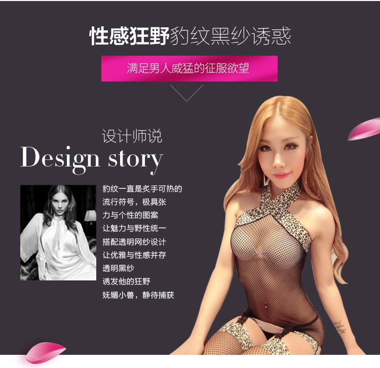 情趣内衣紧身性感吊带豹纹开裆露乳连体袜透明诱惑女士网衣