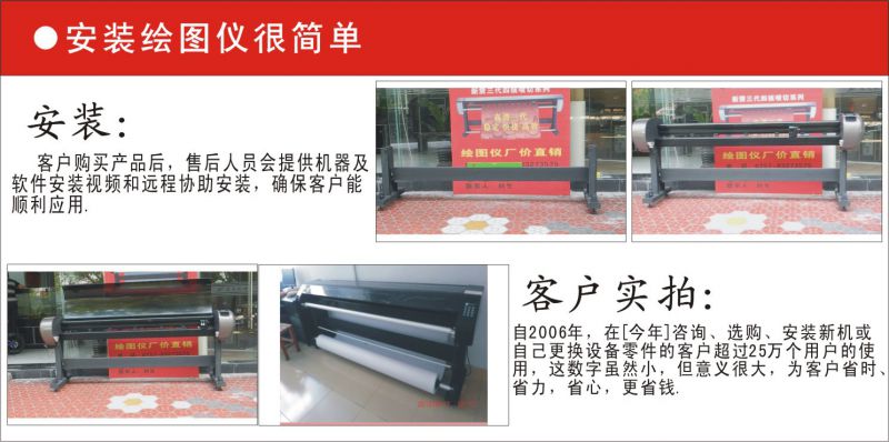 特点:双喷头,用45度刀片,能接收70克至250克的纸张,适应性非常强,目前有全国有五百多家客户在使用这款高科技产品