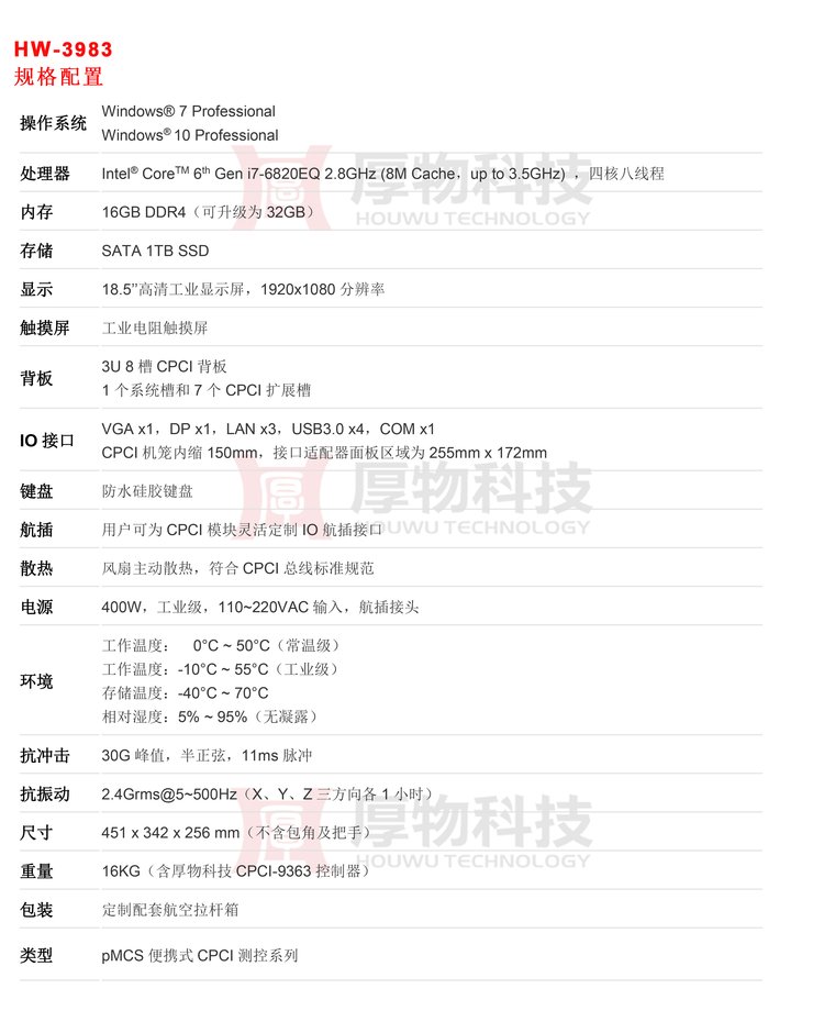 重量 | 16KG(含厚物科技CPCI-9363控制器) | ||