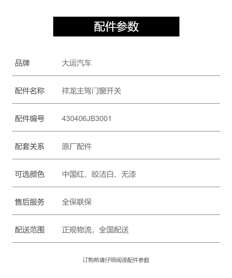 配件名称 | 大运祥龙主驾门窗开关 | ||