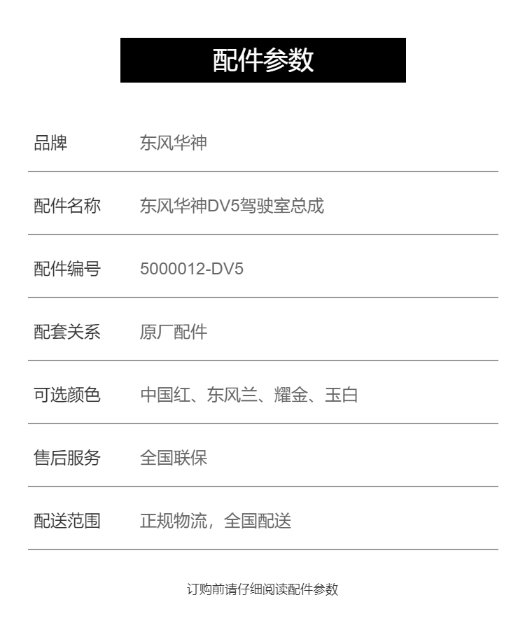配件名称 | 东风华神DV5驾驶室总成 | ||