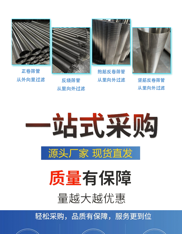 高精度不锈钢绕丝筛管304楔形网反冲洗约翰逊滤管石油防砂管井管