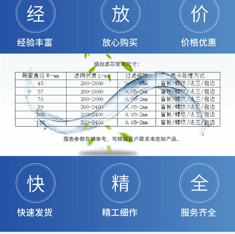 不锈钢楔形网绕丝滤芯树脂捕捉器滤网水处理布水器中排支管滤元