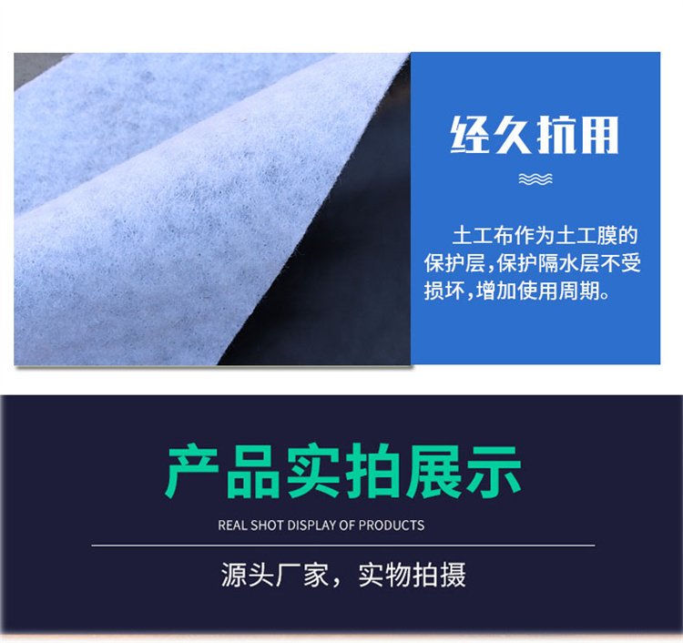 蓄水池人工湖长丝复合膜600g鱼塘虾池防渗土工布两布一膜