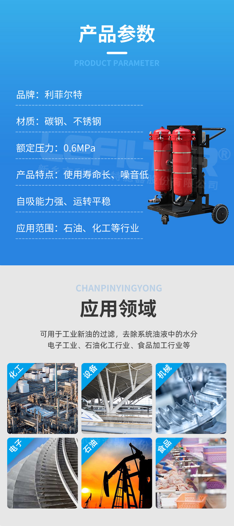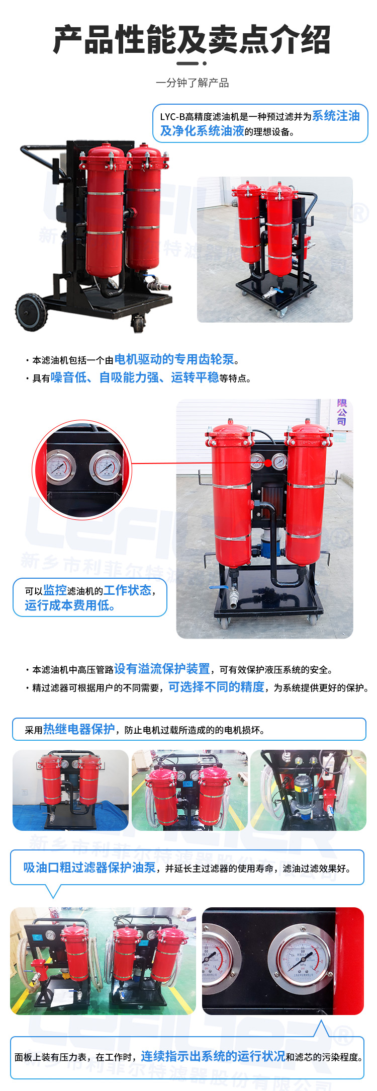 利菲尔特珩磨油液压油过滤机高精度方便移动滤油机