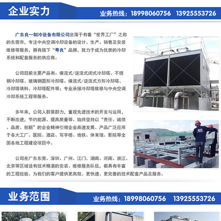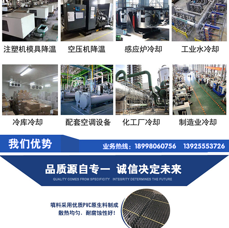 主要材料 | 玻璃钢外壳、PVC填料、风机、电机、集水盘及管道 | ||