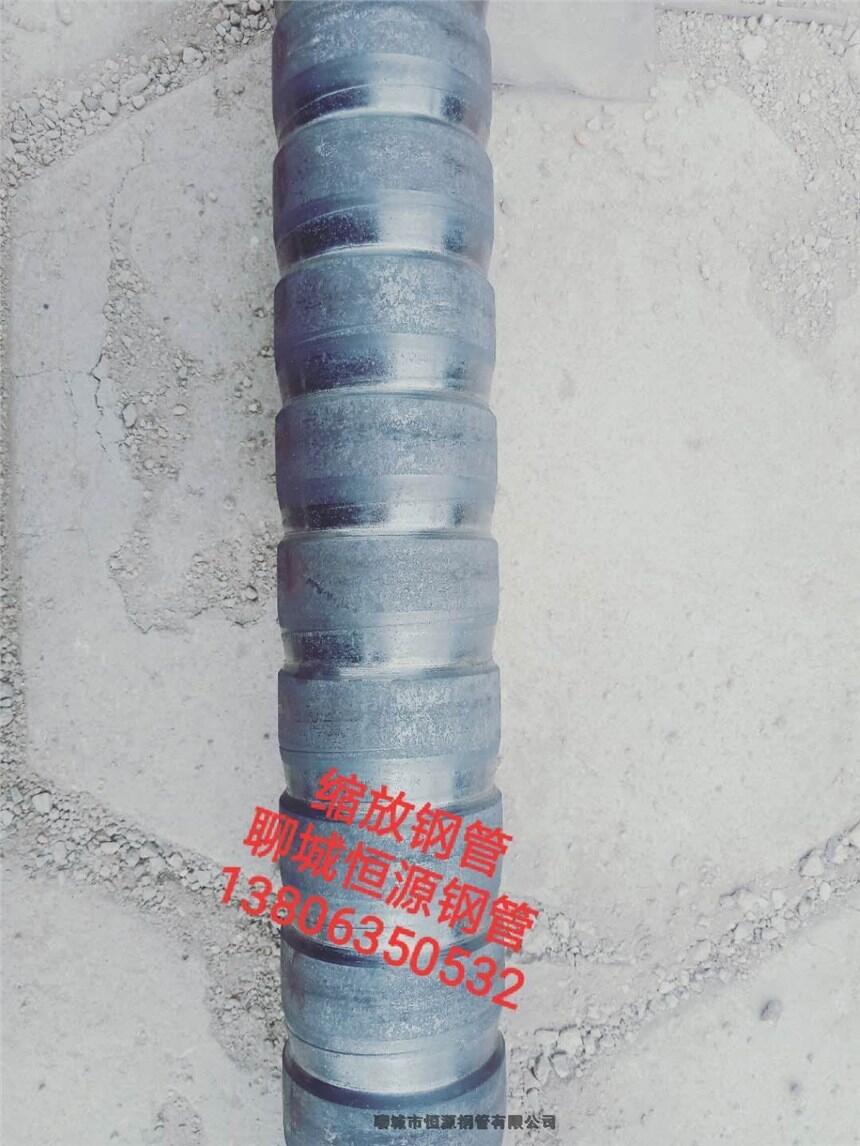 聊城恒源缩放钢管缩放管是由依次交替的收缩段和扩张段组成,使流体始终在方向反复改变的纵向压力梯度作用下流动。扩张段产生的剧烈漩涡在收缩段可以得到有效地利用,收缩段还可以起到提高边界层速度的目的。缩放管在大雷诺数下操作特别有利。该性质正好与纵流式管束支承物的特点相适应。在同等压力降下,缩放管的传热量比光管增加70%以上。缩放管的形状为相对流线型,因而流动阻力比横流槽管小,适合低压气体和肮脏流体的传热。实践表明,缩放管与整圆形折流板等的组合都有显著地强化传热效果。缩放钢管外形酷似糖葫芦,缩放钢管和螺纹烟管原材料都是无缝钢管,两者工作原理些许相似,但缩放钢管日产量较低,缩放管机结构较复杂,模具和轴成本高。缩放管在热交换器中被广泛采用,主要性能是传热系数高,阻力小,热气自管程由上而下,其触媒灰及酸泥有机会可自排污口清除出。