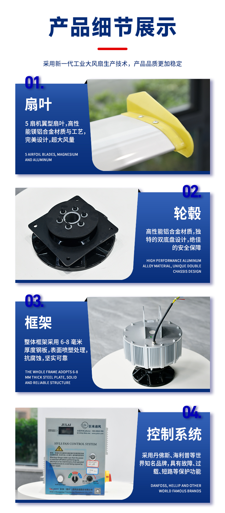 巨来4.9米大型节能风扇0.75kw永磁电机支持定制大风量节能