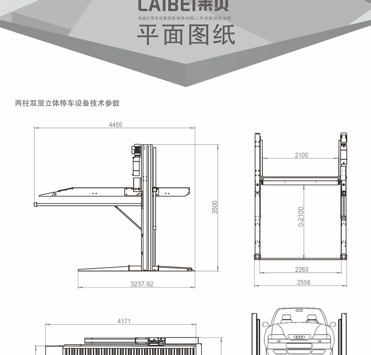 四川莱贝停车设备有限公司致力于立体停车租赁、电动立体车库、停车设备出租、机械停车设备销售、机械式立体车库设备经营租赁、立体停车场投资建设、停车场经营管理、停车场规划设计、停车场施工建设、共享停车、盘活停车场、收购停车场、租赁停车场、收购停车位、出售停车位、停车资产金融管理及互联网停车软件开发车主服务等领域。我们为机场、车站、商场、大学、住宅、酒店、p r停车等各种停车类型,从一个停车场一个区域到一个城市提供停车位投资经营解决方案。公司业务特色鲜明,在市场营销、风险控制、人力资源管理等方面均衡发展,形成覆盖全国的业务网络,建立了科学的管理模式。公司与多家金融机构、设备制造商、服务团队、停车管理等多家企业形成战略合作关系,抓住历史机遇,在尽可能短的时间内,做大做强做出品牌。不断设计并优化停车场方案,为客户提供多元化的立体停车场投资经营以及技术支持服务,致力于成为国内立体停车场投资经营提供商。为了响应快速发展的停车需求和引入社会资源优化停车产业结构的号召,莱贝停车设备配合政策,解决城市停车难题,将未来停车产业推向新的领域。公司利用人才、技术和设备优势,租赁一系列适合国情的产品。主要有:立体停车租赁、电动立体车库、停车设备出租、简易升降式、升降横移升降式等。该产品具有占地面积少、空间利用率高、安装方便、能耗低、噪音小等特点,适用于各种场地和建设要求。公司为客户提供立体车库规划计划、施工设计、安装调试、运营培训、技术支持售后、机械停车设备销售、租赁、回收等多项服务。
