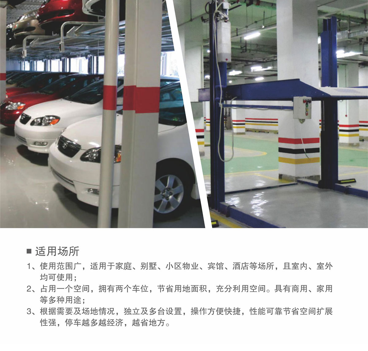 机械式停车起步较晚,直到上世纪80年代中期才有设计院开始进行研发,并于1988年在北京建成了机械式停车库,两层68个车位。当时的汽车保有量还低,1985年保有量79.5万辆,而北京只有5.8万辆,在这种情况下开发机械式立体停车术不能不说有远见。因为15年后当的汽车市场门户洞开、汽车保有量快速增,的停车设备制造产业已经,能够为城市提供各种类型的机械式立体停车设备了。我国机械停车设备发展现状保障安全更近几年,一些由在城市商业中心投资兴建的大型车库也开始采用全自动的机械式停车设备。据前瞻产业研究院发布的《2015-2020年机械停车设备行业调研与投资战略规划分析报告》显示,截至2013年底,机械式停车库的城市有403个,机械式停车库项目总数10397个,泊位总量2,156,407个。泊位总量目前仅次于日本,日本现在大概有286万余个机械式停车位,也许再过两年,我们的总量将日本居。目前除外,各省市自治区几乎都有了机械式停车库,普及率比较高。另外,每年的出口量目前也居,2013年出口27个和地区,23600多个泊位,其中主要是美、欧和。日本是目前上采用机械式停车库更多的,自上世纪60年代以来,机械式停车库随着汽车保有量的增加而逐年增加,并逐渐成为日本城市停车的主流形式,占到了路外配套停车位63.5的比重。和日本停车市场的情况相近,但目前机械式停车位占的比例还不到5。经过20来年的发展,主要的骨干企业在术上已经形成了较强的自主开发能力,形成了较为产品及术系列,实现了产品的规模化和批量化生产,并且在市场中形成了自己的和特色。但目前有一个不太好的现象,在机械式停车库正逐步为城市新建住宅小区配库所选用的同时,一些房地产商看重的不是车库的实际使用价值而是利用价值。有不少住宅小区选用机械式停车库很上只是为了满足规划的车位配套需求,以取得规划部门的建设和销售许可,对车库的质量、安全并不关心,一味追求车库的容车数量和,这样一些车库建成后达不到使用要求,给机械式停车库带来比较的。机械式停车库要为民所用、为民,部门应法,对建成机械式停车库的力度,车库的出现。