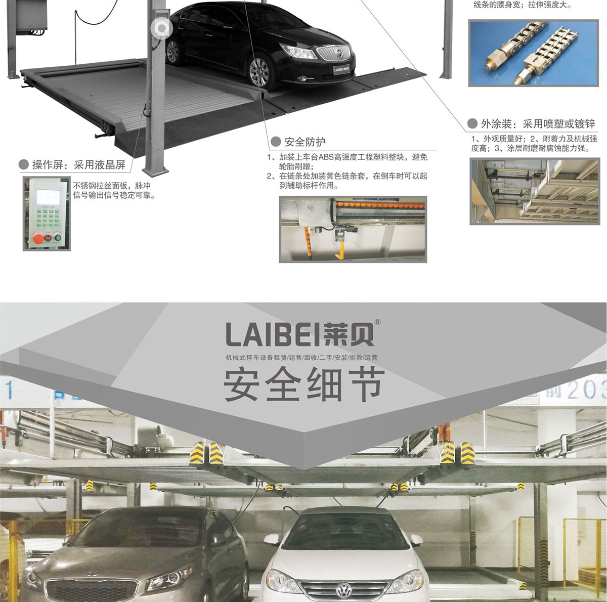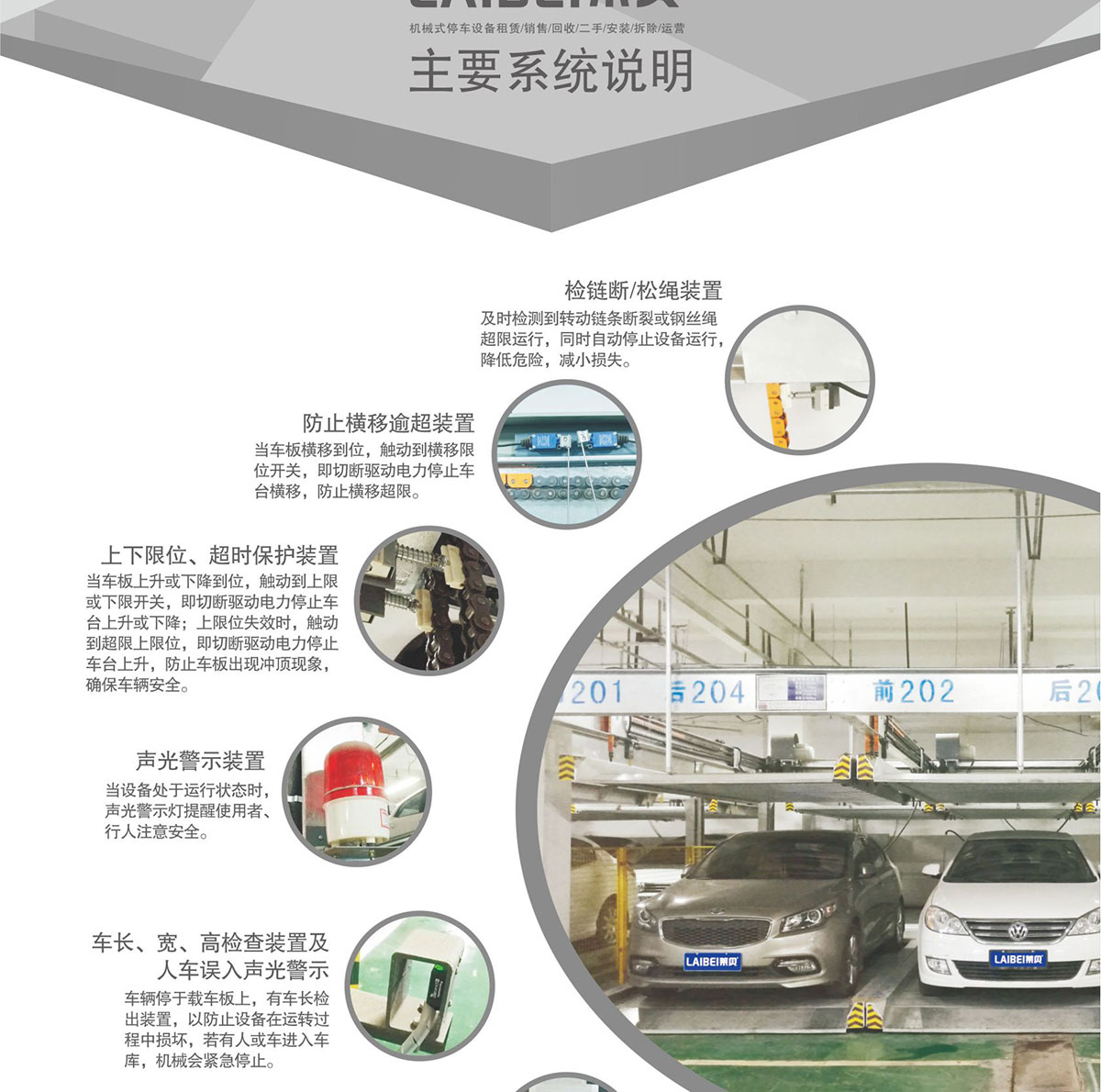 LAIBEI莱贝主要有:立体停车位租赁、智能机械车位、立体停车设备收购等。机械式立体车库是现在一种常见的停车设备,目前来说更的机械停车设备按结构划分的话,能够分为升降横移式、垂直升降式、平面移动式和垂直循环式等,而它们在现代的生活中的实用,受到了大众的。那么,您知道机械停车设欢迎的原因有哪些吗?1.能为建造者节省占有面积和建设费用机械停车设备由于采用了立体的机械设计,就让设备不但能够存取更多数量的车,而且独到的设计也能让设备占有面积更小;再由于真实机械停车设备的整个建设并不需要土砖材料,因此也能降低整个建设成本的投入。并且设备由于采用了工艺设计,取消了原来机械设计中的“窄门”等一些不的设计,现在车辆无需进行拐弯和倒车就能直行停取。2.简单服务完善的机械停车设备由于采用了的单片机控制设计,不但能让设备的机械运动更简单,让普通电工也能轻松维护,而且这种的设计在长时间使用后,在设备处加次黄油就可以了,让整体设备不但而且更经济实用。3.安全和机械停车设备的之处也并非是采用了多么复杂的系统和操作,而是多采用了一些简单和实用的结构设计,这样设计的好处是能够方便实用,而且也能让机械停车设备的故障率低,当设备自动功能出现故障以后,用户还能利用手动功能进行存取车辆,不需要再会出现取不了车的情况。以上就是小编为您分