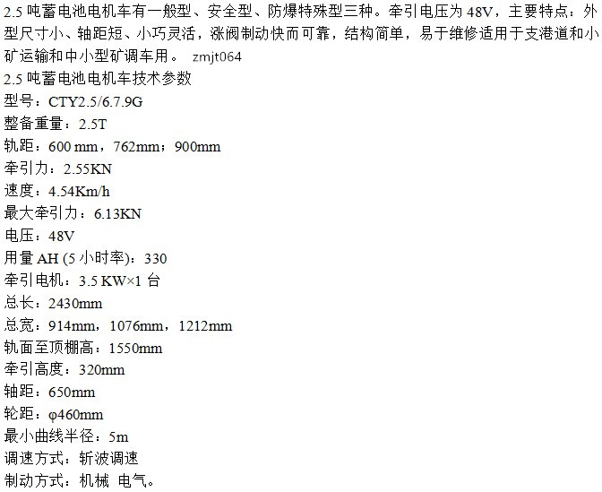 用途 | 井下巷道牵引矿车组、运输器材及人员 | ||