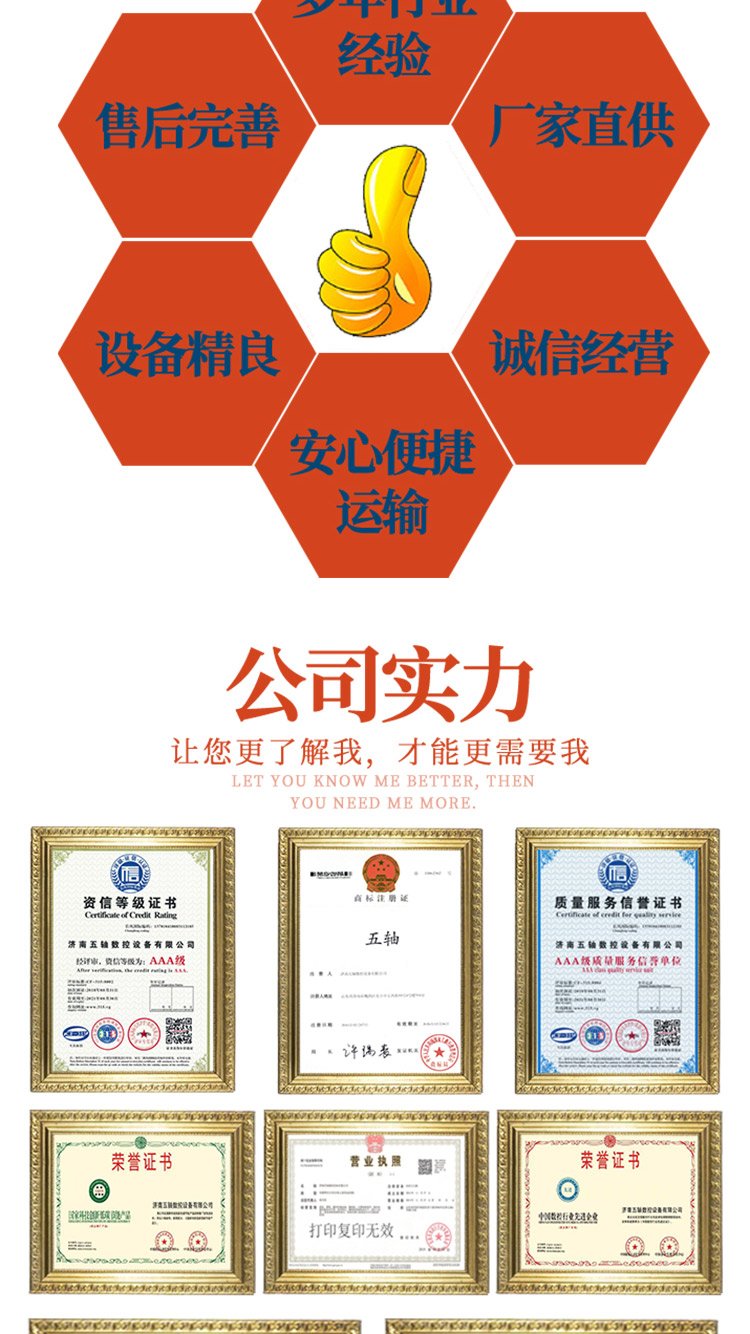 济南五轴数控设备有限公司:本公司是国内一家致力于维修生产研发数控雕刻机设备的高新技术企业。公司自成立以来本着开拓创新的精神,凭借多年来在电脑数控、电脑自动化领域研发、生产积累的丰富经验,吸取行业内先进的数控技术,进而形成了专业数控雕刻机维修及培训的厂家,并且自行研发生产出“五轴”系列数控加工中心、木工雕刻机、雕刻机、浮雕雕刻机、玻璃雕刻机、金属雕刻机、等离子切割机·激光雕刻机、保丽龙模具雕刻机。产品涉及木工机械、石材机械、设备、激光设备、金属模具以及玻璃行业等,可根据客户的要求定做机器。因为我公司是一所专业维修研发雕刻机的厂家,五轴的品牌迅速在全国打响,优势更集中体现在我公司聚集了雕刻机领域众多高级人才,“五轴”品牌雕刻机迅速行销全国。