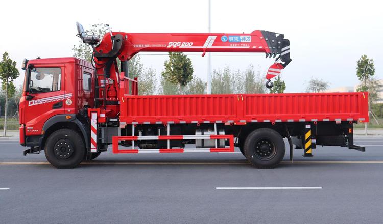 上装【明建神力】8吨4节U型直臂吊机,工作半径13.5M,举高15.5M,或5节臂,工作半径15.5M,举高17.5M,可选装原厂后固定支腿,单腔双出支腿,双腔双出支腿,原厂散热器,通副梁,散热器工作灯,遥控一键启停。