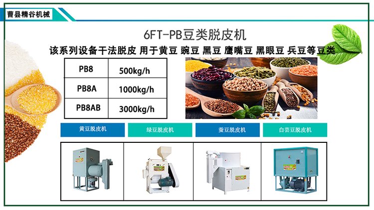 黑豆,别名乌豆,黑大豆,因为其黑色的外皮,在加工过程中,一般要脱皮去皮,我公司生产的黑豆脱皮机,乌豆脱皮机是根据国内外黑豆类加工市场需求而开发的一款机型。设备采用我公司特有脱皮技术,皮仁分离干净,加工效果好,对车间没有特殊要求,设备结构紧凑,全自动化设计,占地面积小,动力小,工作效率高,操作维修方便,干净卫生整洁,耐用,为以后食品检验不留任何隐患。是目前国内动力小,占地少,自动化程度高,成品质量好的豆类脱皮机组。适用于食品加工厂、宾馆、酒店、食堂、专业户等使用。