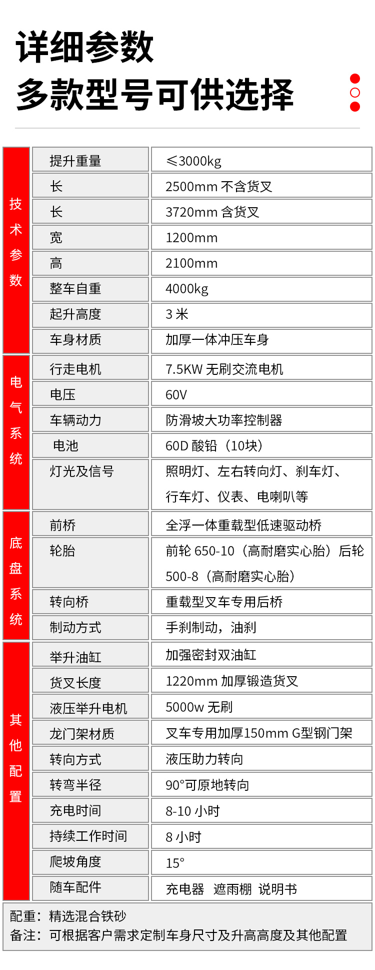 规格 | 电动叉车 | ||