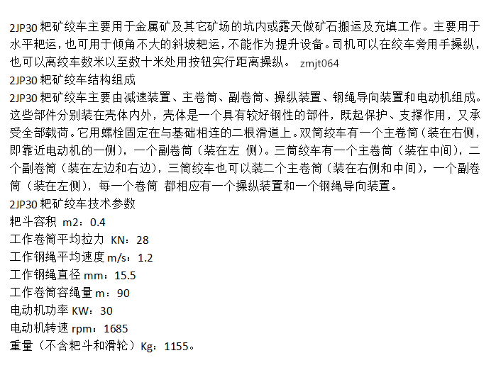 型号 | 2JP30耙矿绞车 | ||