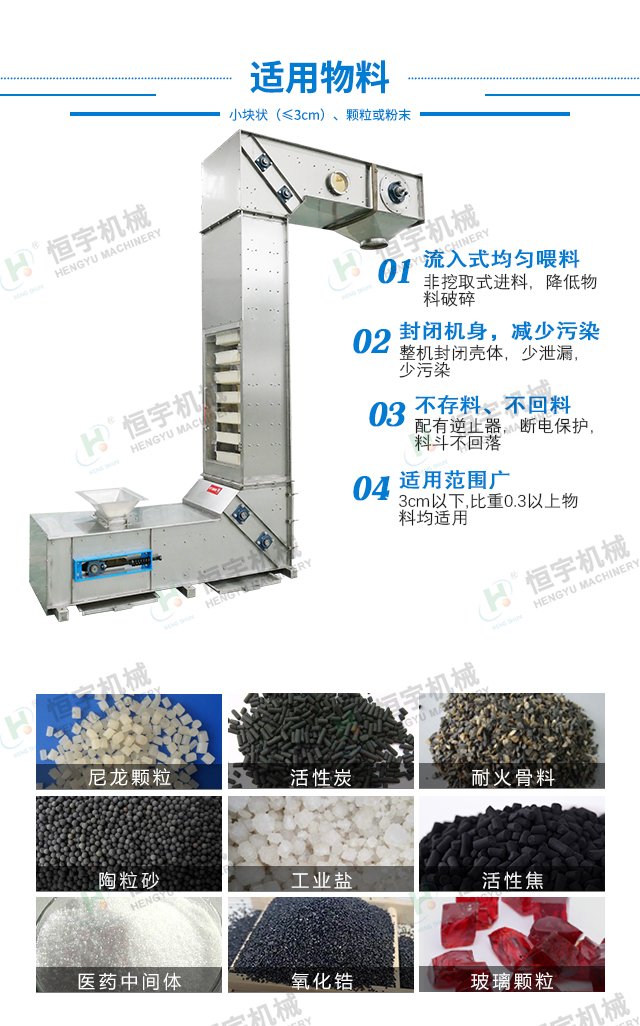 恒宇炭黑密封式多点加料z型斗式提升机石英砂高耐磨z字形斗提机
