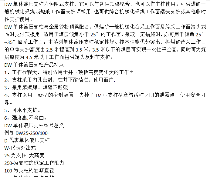 种类 | 单体液压支柱 | ||