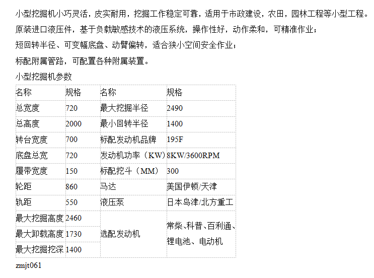 型号小型挖掘机