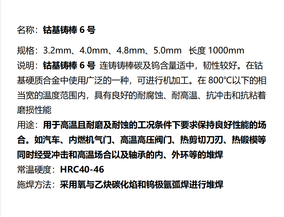 型号 | 钴基1号 钴基2号 钴基6号 钴基12号 钴基21号 S111 S112 | ||