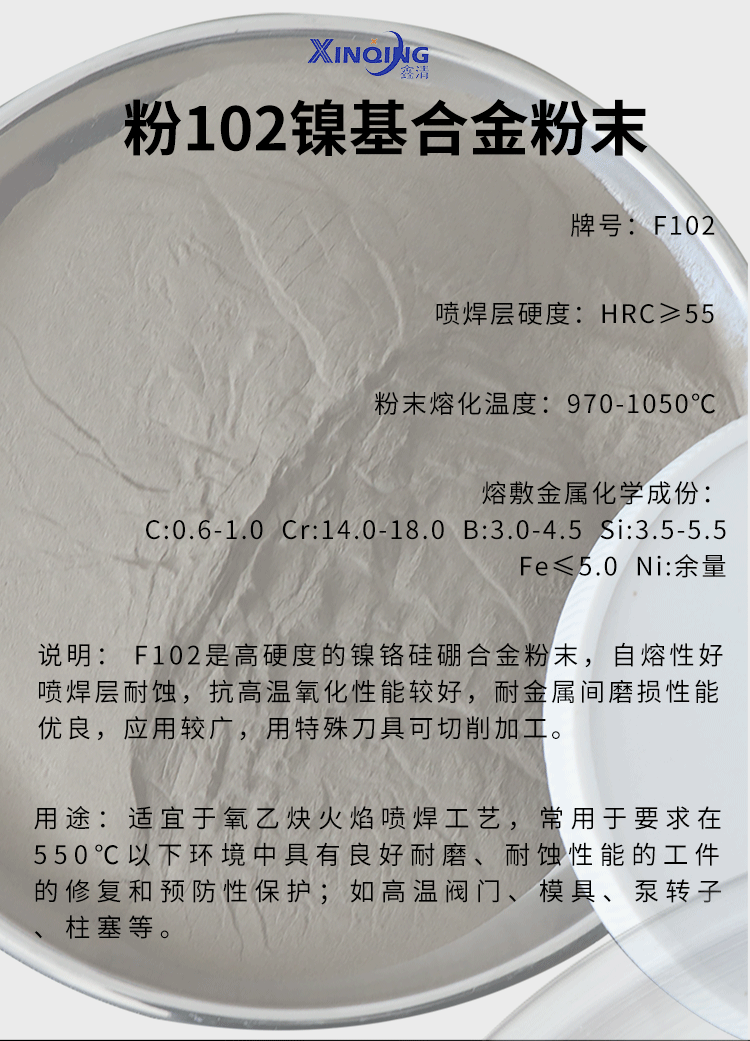 牌号 | 镍基合金粉末F101 F102 F103 Ni25 Ni45 Ni60 Ni60A Ni60AA | ||