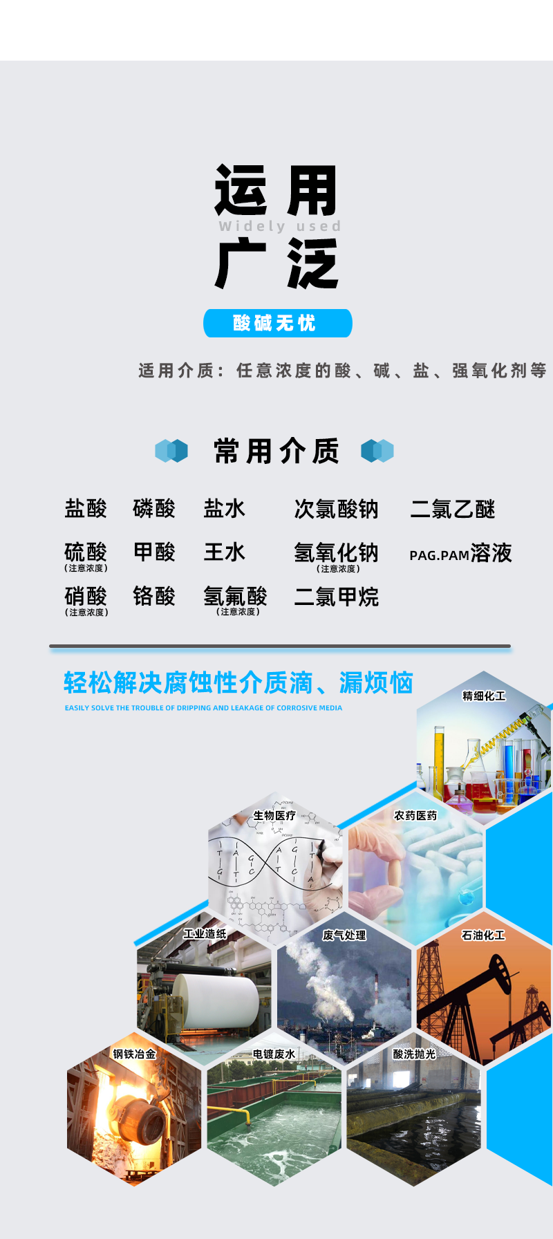输送介质 | 强酸强碱介质 | ||