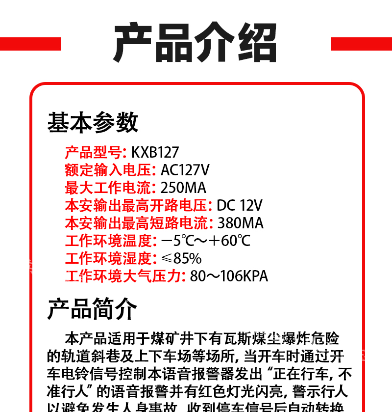 适用范围 | 煤矿井下有瓦斯煤尘爆炸危险的轨道斜巷及上下车场等场所 | ||