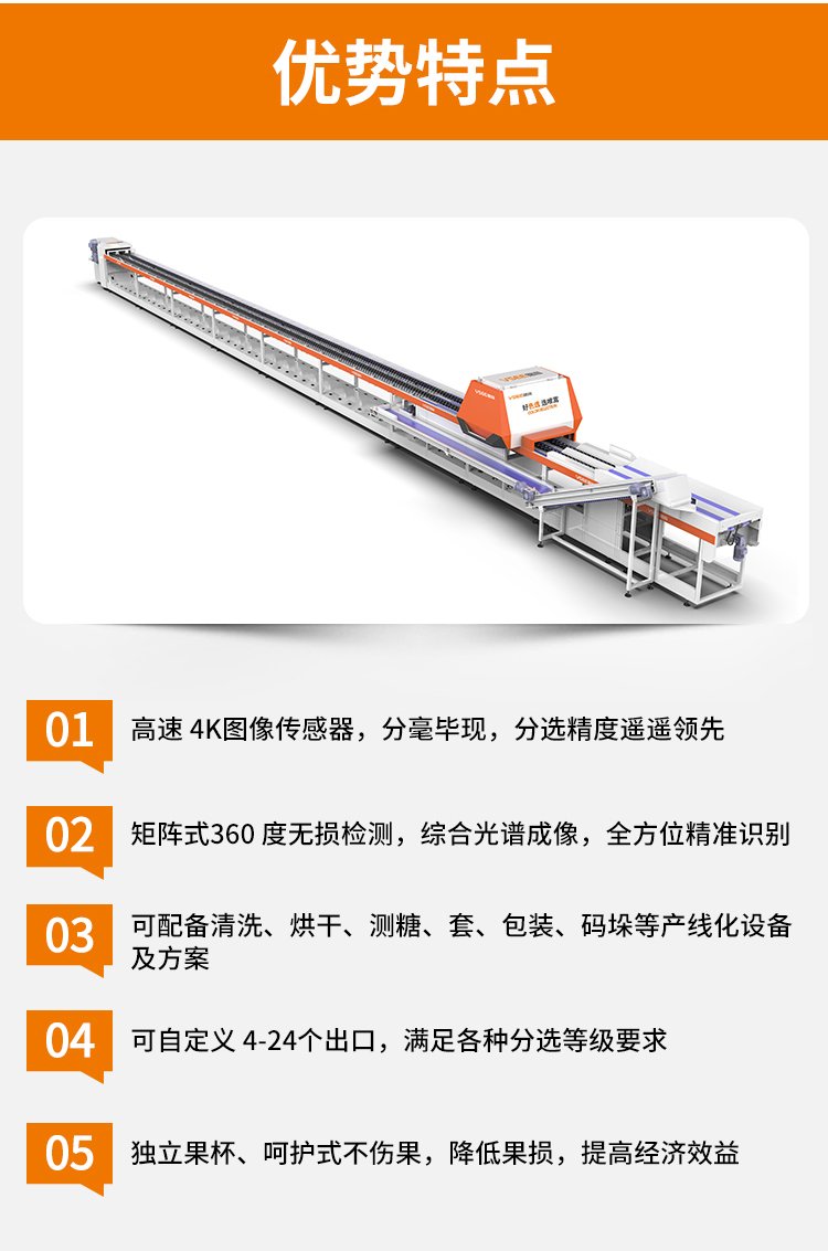 可分选物料 | 柠檬、沃柑、橙子、橘子、百香果、猕猴桃、油桃、苹果、梨、牛油果 | ||