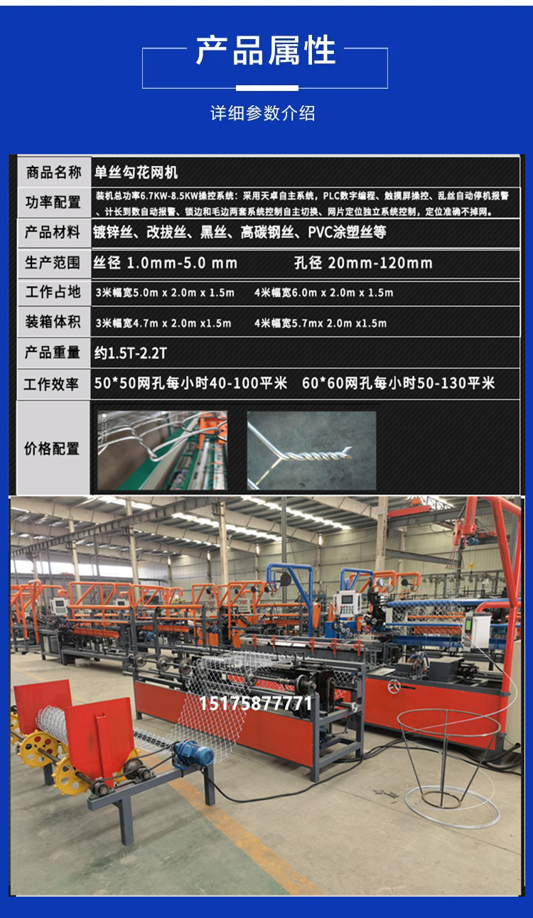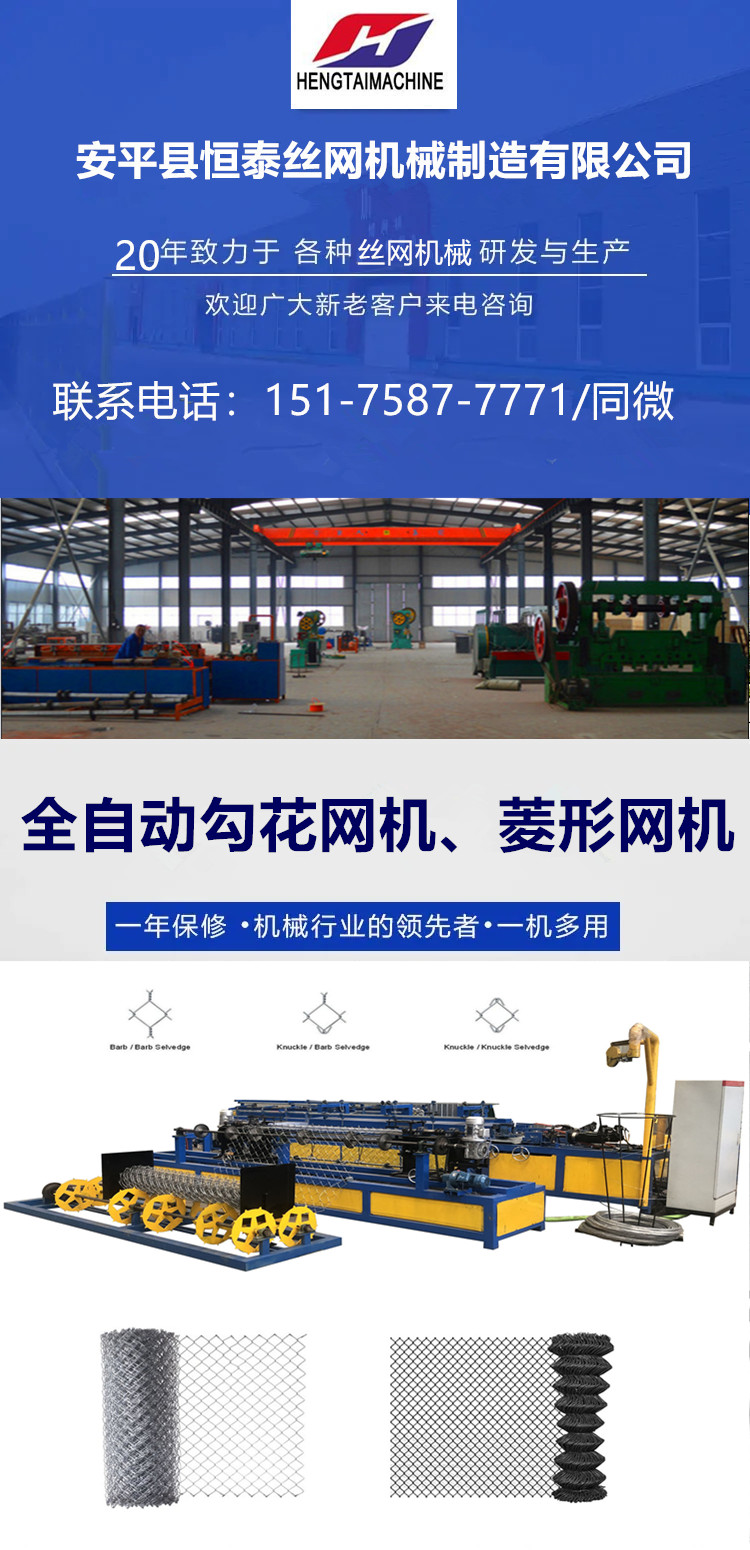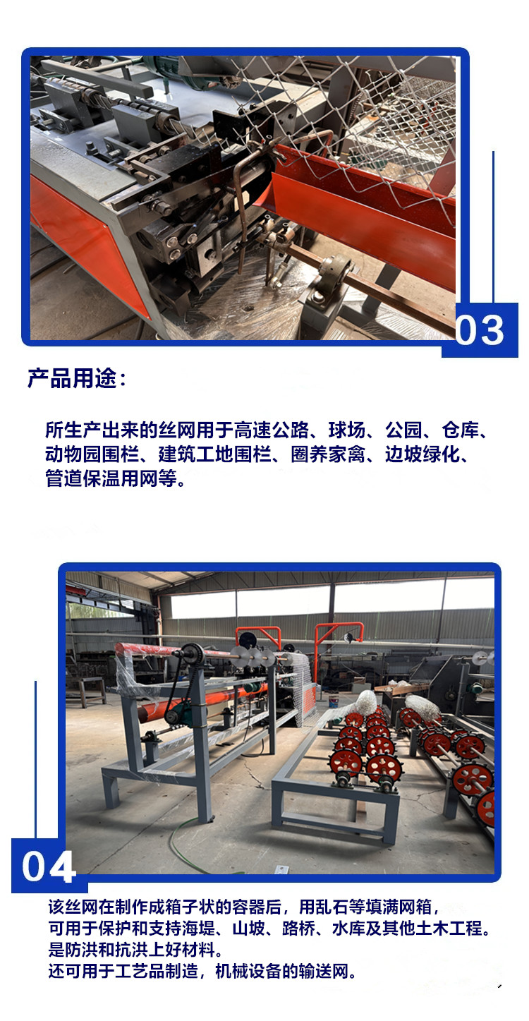 用途范围 | 编织菱形网、石笼网、勾花网、球场围栏网 | ||