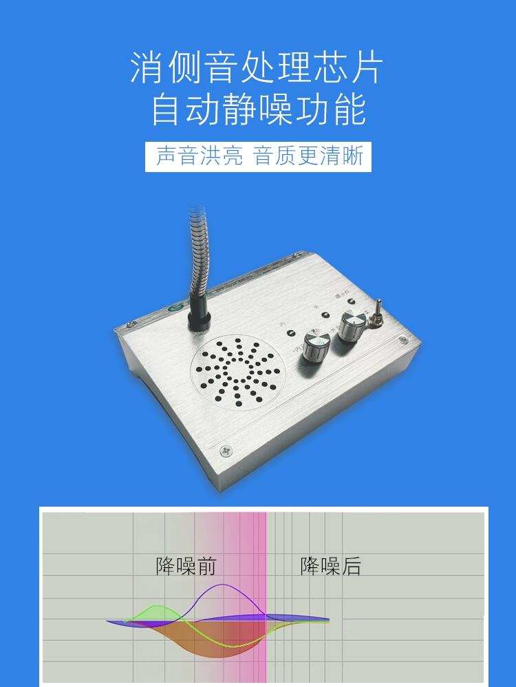 1、优质半金属材质 2、圆形副机小巧美观 3、对讲系统语音逼真清晰 4、具备静噪芯片杜绝啸叫 5、实时录音功能 6、可以用在任何窗口交谈